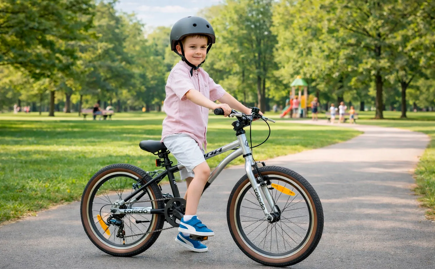 Благодаря прорезиненным грипсам руки ребёнка не будут соскальзывать с руля.