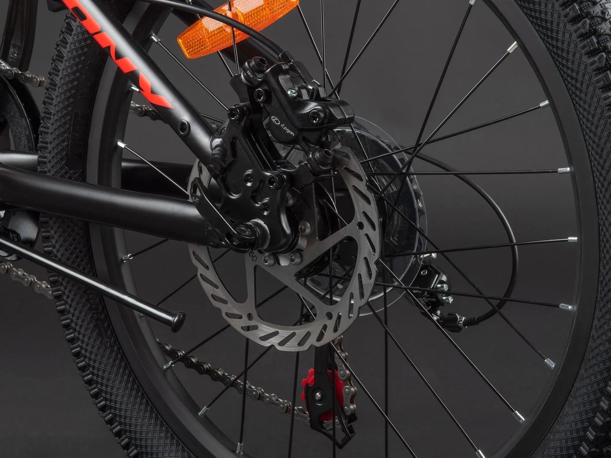 Благодаря амортизационной вилке ребёнок сможет легко кататься по ухабистой дороге и бездорожью, прямо как взрослые MTB-гонщики.