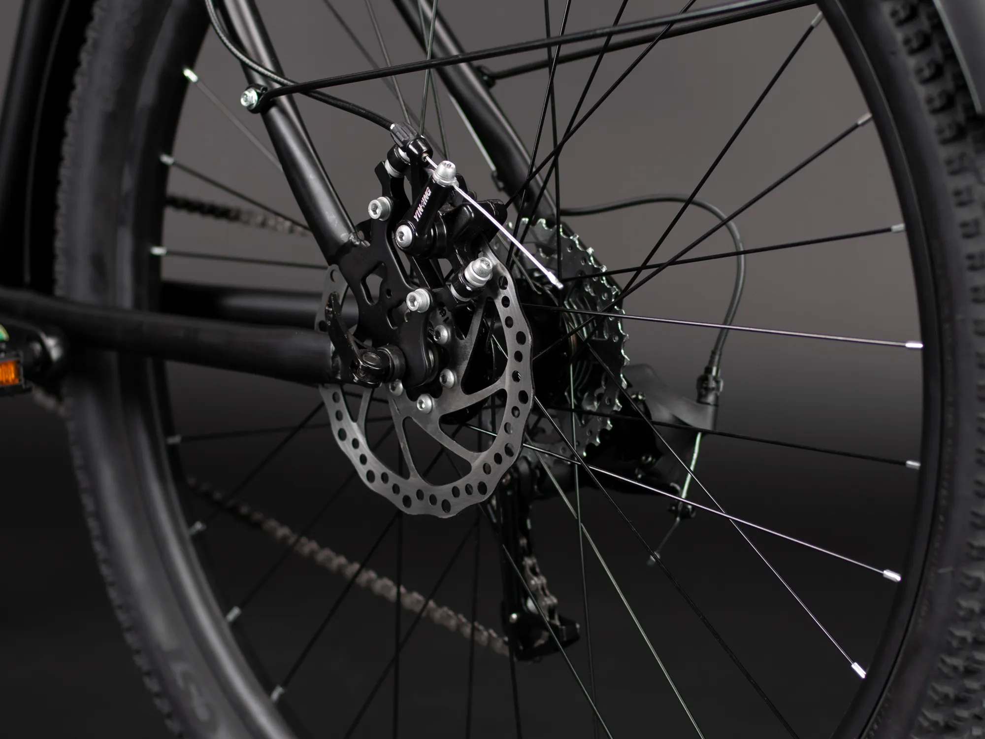 На байке установлены дисковые механические тормоза – высокоэффективные и неприхотливые, они работают даже в самых суровых условиях, им не страшны грязь, снег и дождь. Они позволяют плавно регулировать тормозное усилие, не изнашивают обод и редко требуют обслуживания.