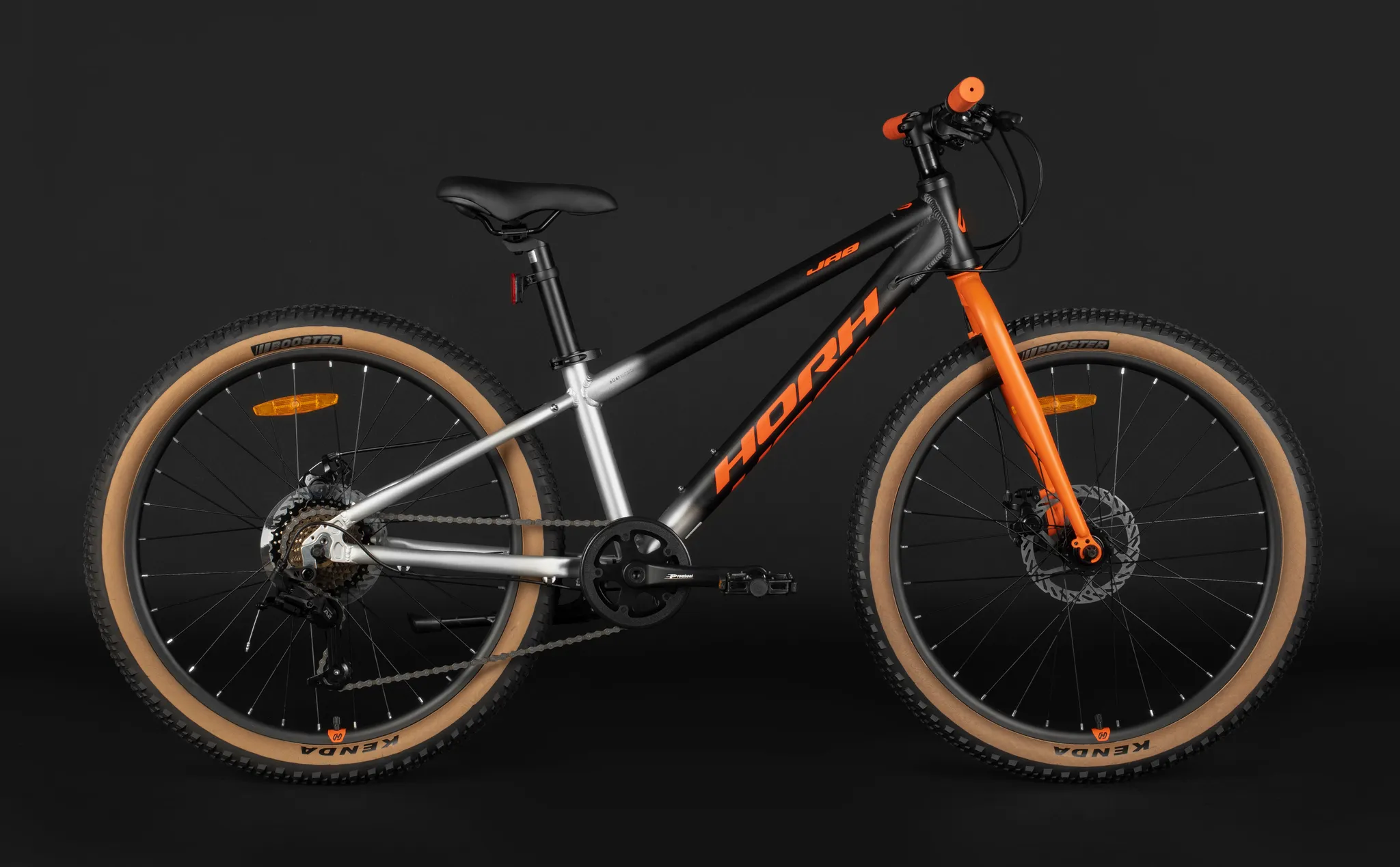 Велосипед Horh Jab JRMD 4.0 с колёсами диаметром 24 дюйма идеально подходит для детей в возрасте от 8 до 12 лет, он изготовлен из алюминия, обеспечивая лёгкость и прочность конструкции. Оснащён дисковыми механическими тормозами и 7 скоростями, что позволяет детям легко контролировать скорость и наслаждаться катанием на велосипеде. Удобное седло и регулируемое по высоте рулевое управление обеспечивают максимальный комфорт во время езды. Этот велосипед станет отличным выбором для активного отдыха и развития навыков катания у вашего ребёнка.