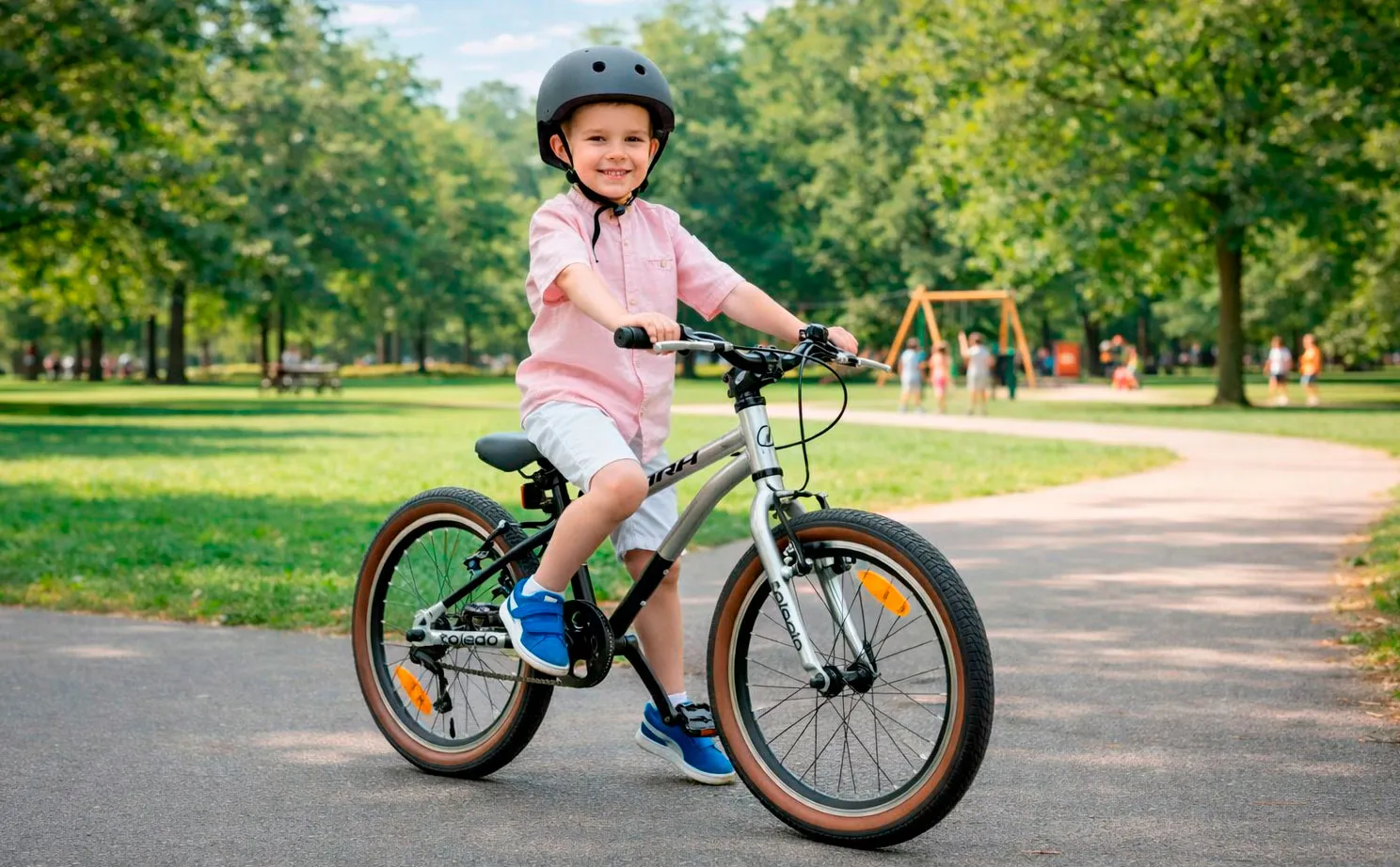 Благодаря прорезиненным грипсам руки ребёнка не будут соскальзывать с руля.