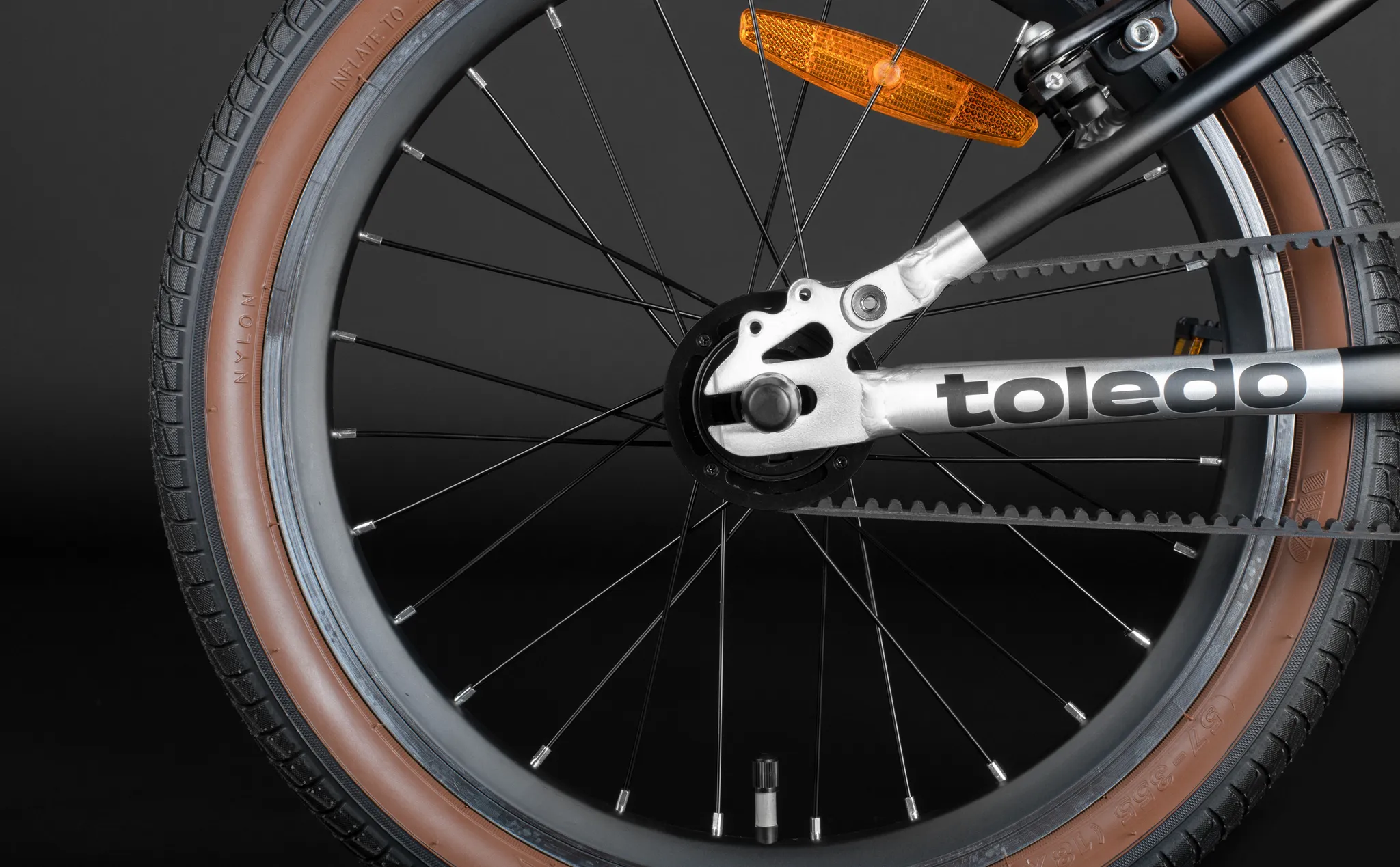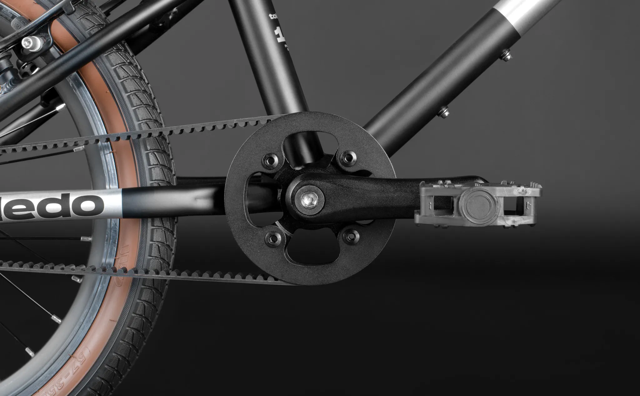 Вместо цепи на этом велосипеде установлен специальный ремень, не требующий особого обслуживания – он лёгкий, надёжный и не требует смазки.