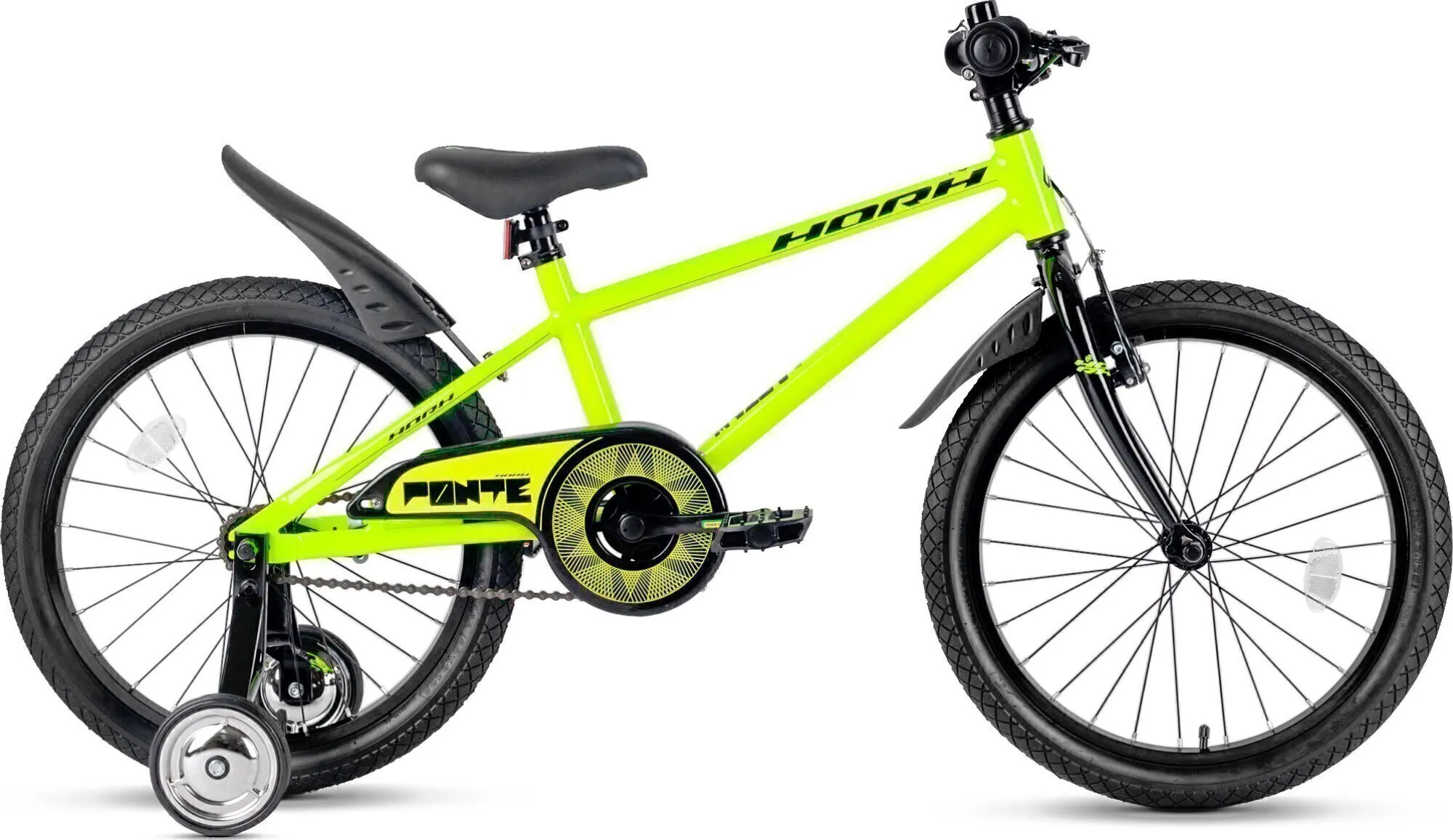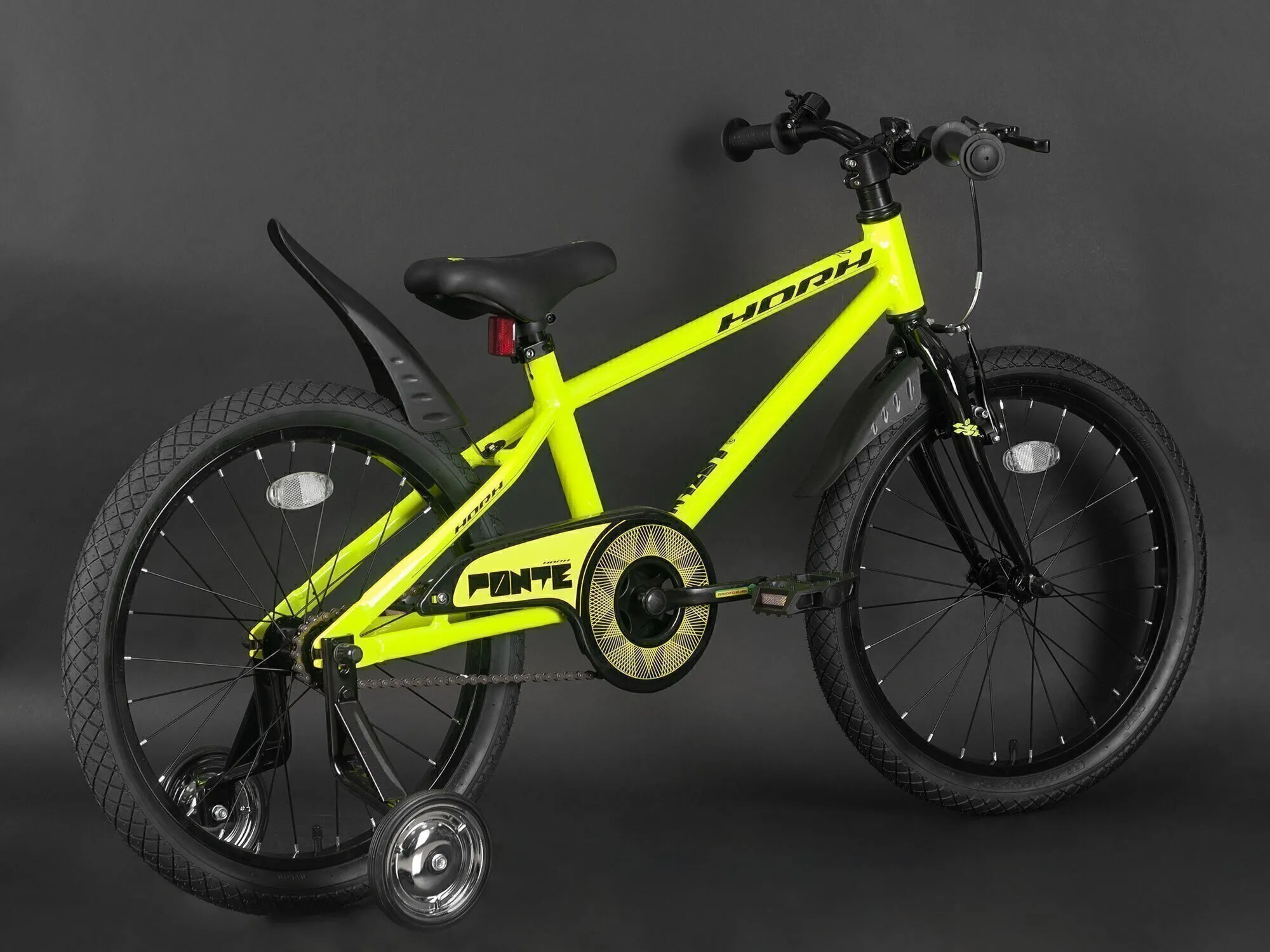 Яркий детский велосипед от крутого бренда Horh станет отличным подарком для ребёнка. Он создан специально для юных искателей приключений, оснащён надёжными тормозами, дополнительными съёмными маленькими колёсами и яркой защитой цепи.