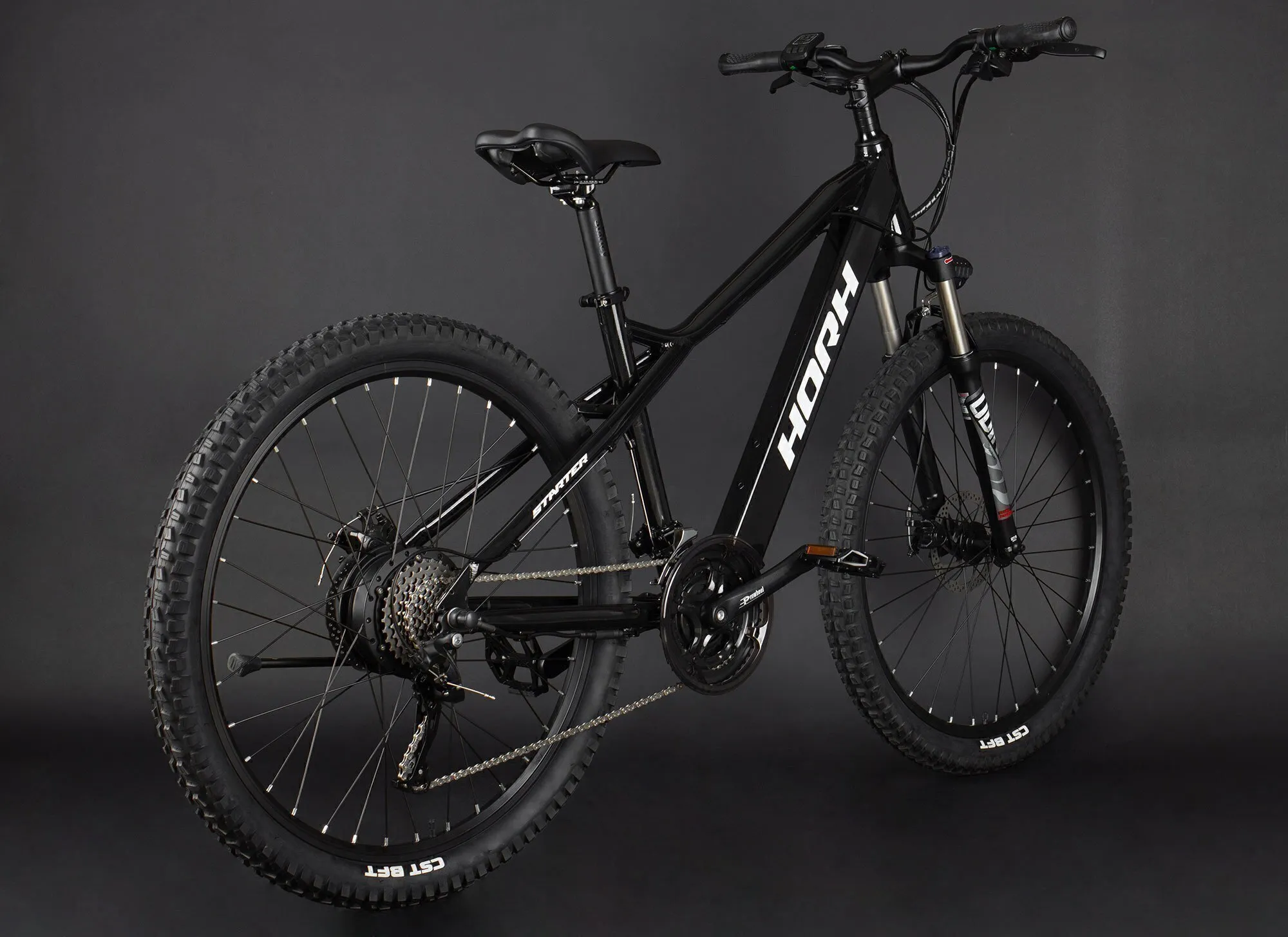 Horh Starter – мощный и надёжный байк MTB, который несомненно понравится вам своим дизайном. Он оснащён системой ассистента – это специальные датчики, которые устанавливаются на каретку электровелосипеда. Когда вы начинаете крутить педали, то электровелосипед сам включается и начинает с определенным уровнем помощи вам помогать.